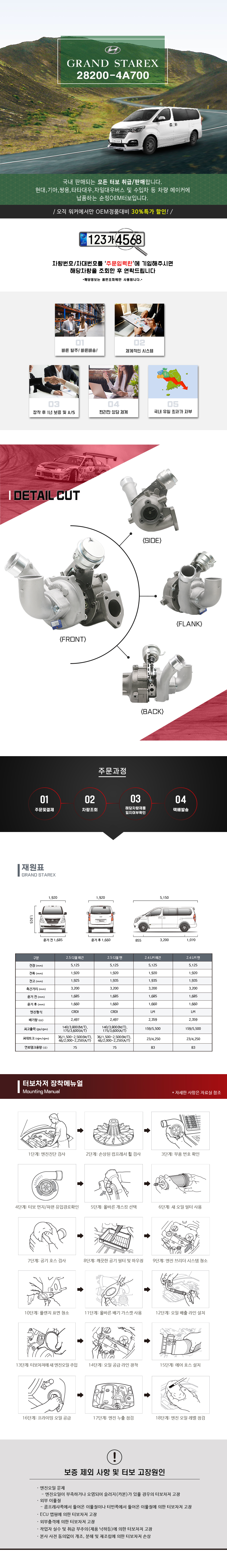 [현대][국산차 OEM] 스타렉스 TQ 28230-4A700 터보차저